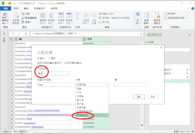 step 4 - 以 向下填滿 的方式,把 null 填入 藥名。
